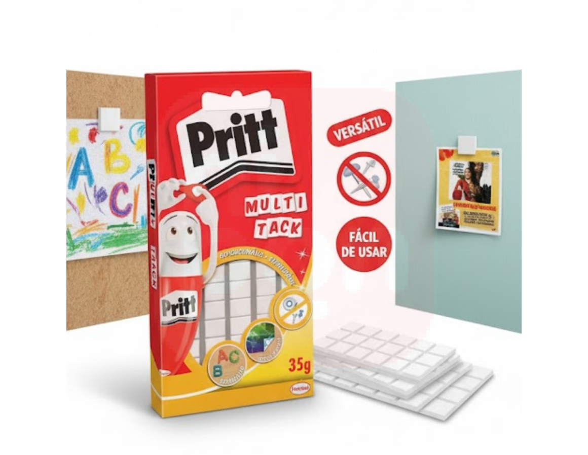A Multi Tack Massa Adesiva – Pritt é a alternativa inteligente e reutilizável para fixar objetos leves sem danificar superfícies. Ideal para papéis, pôsteres, fotos e lembretes, essa massa adesiva substitui fita adesiva e tachinhas com muito mais praticidade. Com excelente poder de fixação, pode ser aplicada em paredes, vidros, portas, painéis e outras superfícies lisas. Além disso, é removível, não tóxica e fácil de usar, sendo perfeita para uso escolar, em escritórios ou ambientes criativos. Com a qualidade reconhecida da Pritt, essa solução versátil traz mais organização e funcionalidade ao seu dia a dia.