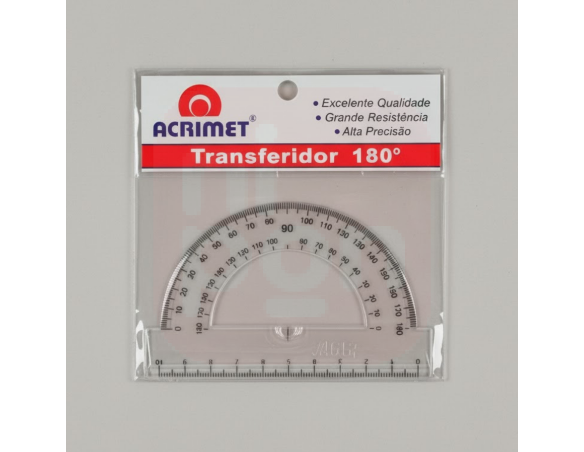 O Transferidor 180° Acrimet oferece precisão, durabilidade e praticidade para medições e traçados exatos. Fabricado em acrílico transparente de alta qualidade, permite visualização perfeita do papel, facilitando o alinhamento e a leitura dos ângulos. Ideal para uso escolar, profissional e técnico, o transferidor Acrimet é resistente, leve e de fácil manuseio, garantindo resultados precisos em cada utilização.
