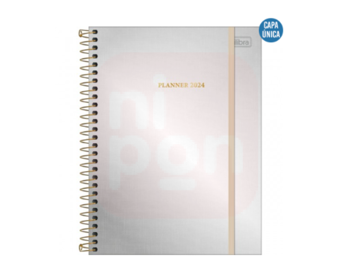 O Planner Espiral 17,7 x 24 cm West Village Metalizado 2024 pode ser usado para organizar os compromissos do dia a dia em casa, no trabalho e na escola. O produto, com visão semanal, mensal e anual, tem capa dura com hot stamping e fechamento em elástico, espiral dourado, miolo com 80 folhas, adesivos e bolsa de papel para guardar documentos.