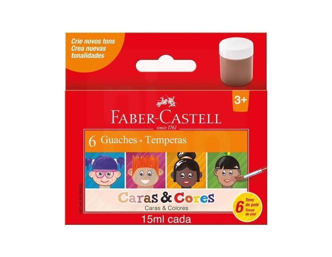 Tinta Guache 6 Cores Tons de Pele 15ml Caras e Cores - Faber-Castell