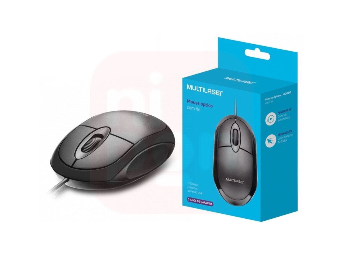 Mouse Classic Óptico USB 1200dpi Preto Multilaser - MO300