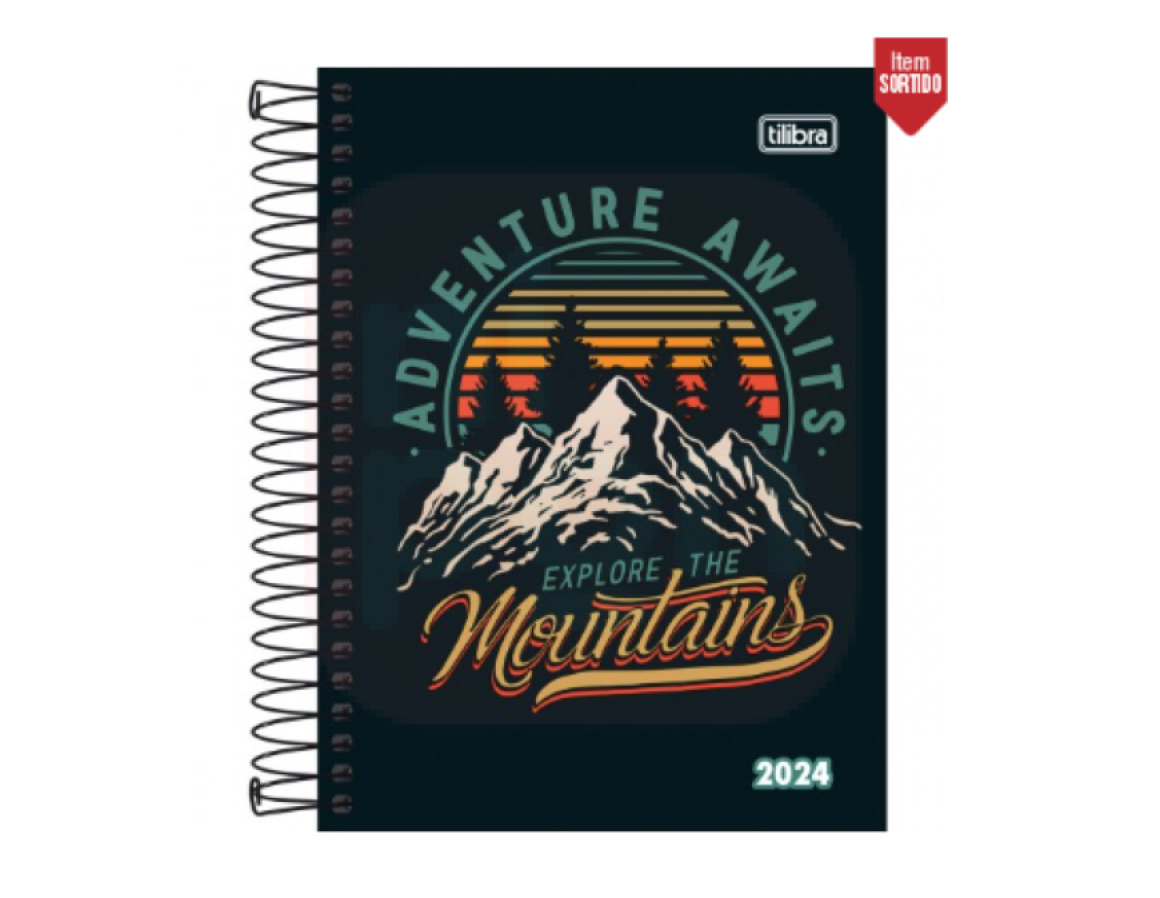 Agenda capa dura, espiralada com visão de 1 dia por página, exceto sábado e domingo. Ideal para a organização do dia a dia.