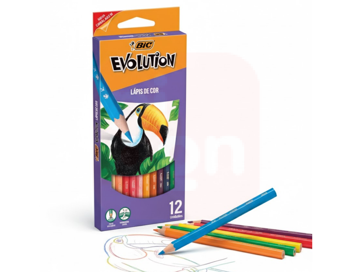 2. Lápis de Cor Sextavado Evolution 12 Cores – BIC